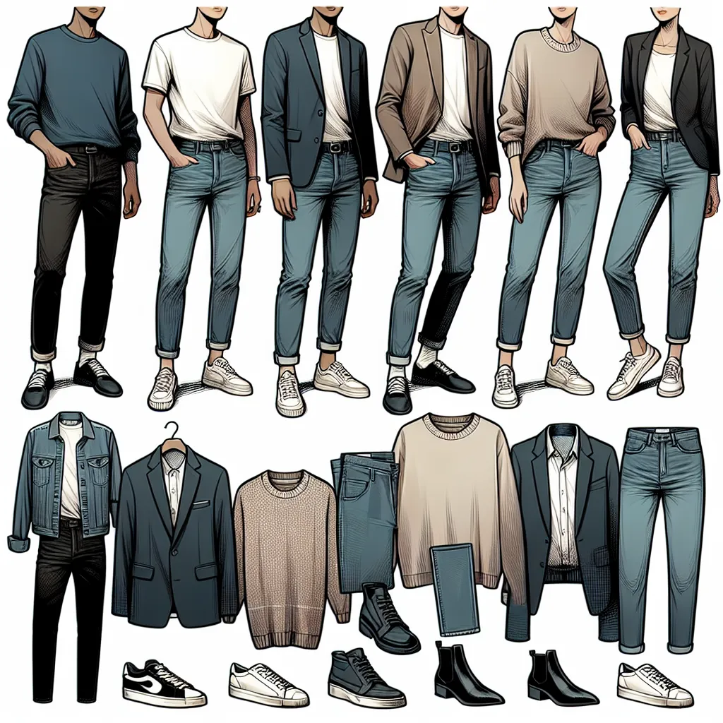 Для создания классического образа сочетайте прямые джинсы с белой рубашкой и пиджаком. Добавьте кожаные туфли или лоферы, чтобы завершить образ. Этот стиль подходит для офиса или деловых встреч.